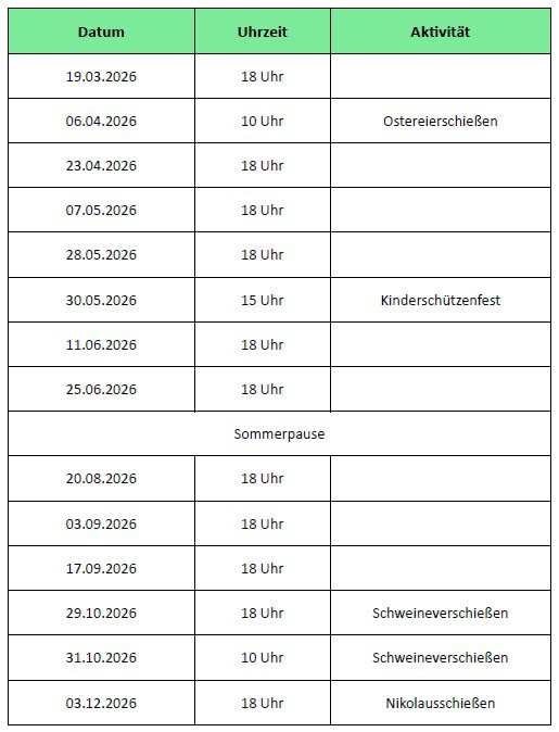 Ergebnisse Pokalschießen 2026